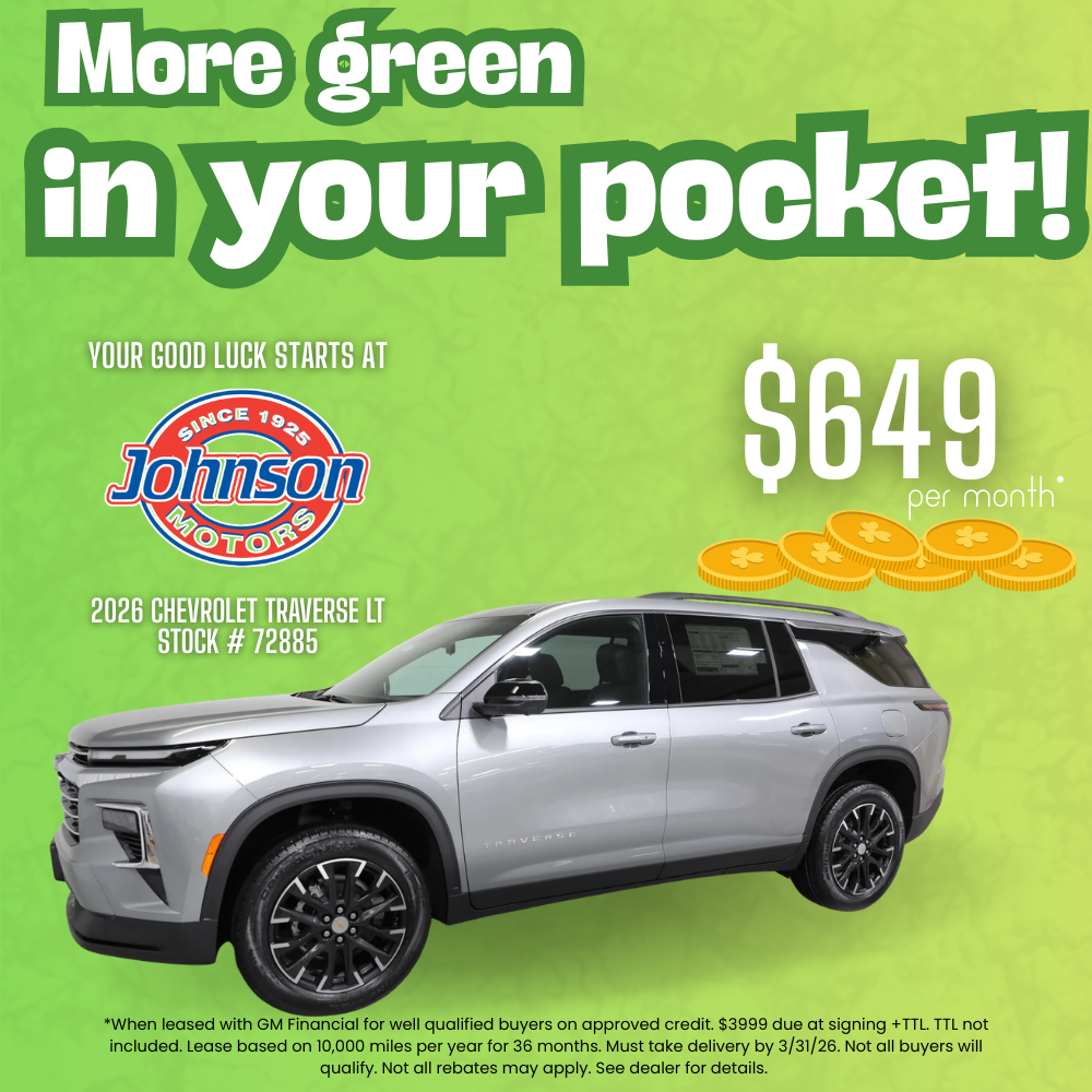 *When leased with GM Financial for well qualified buyers on approved credit. $3999 due at signing +TTL. TTL not included. Lease based on 10,000 miles per year for 36 months. Must take delivery by 3/31/26. Not all buyers will qualify. Not all rebates may apply. See dealer for details.