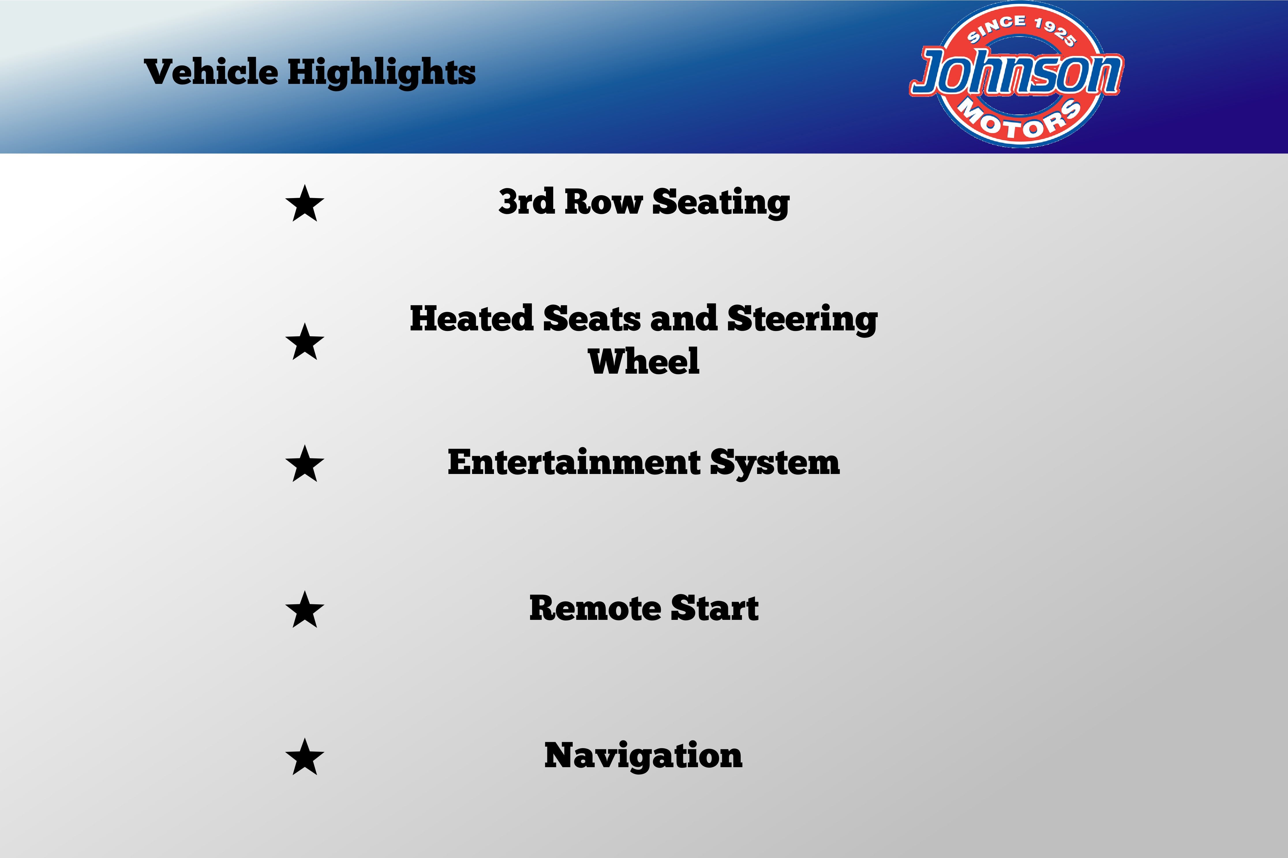 Three-Row Seating for Up to 7-8 --- Spacious interior with room for passengers and cargo --- perfect for big families, carpools, or weekend gear hauling.