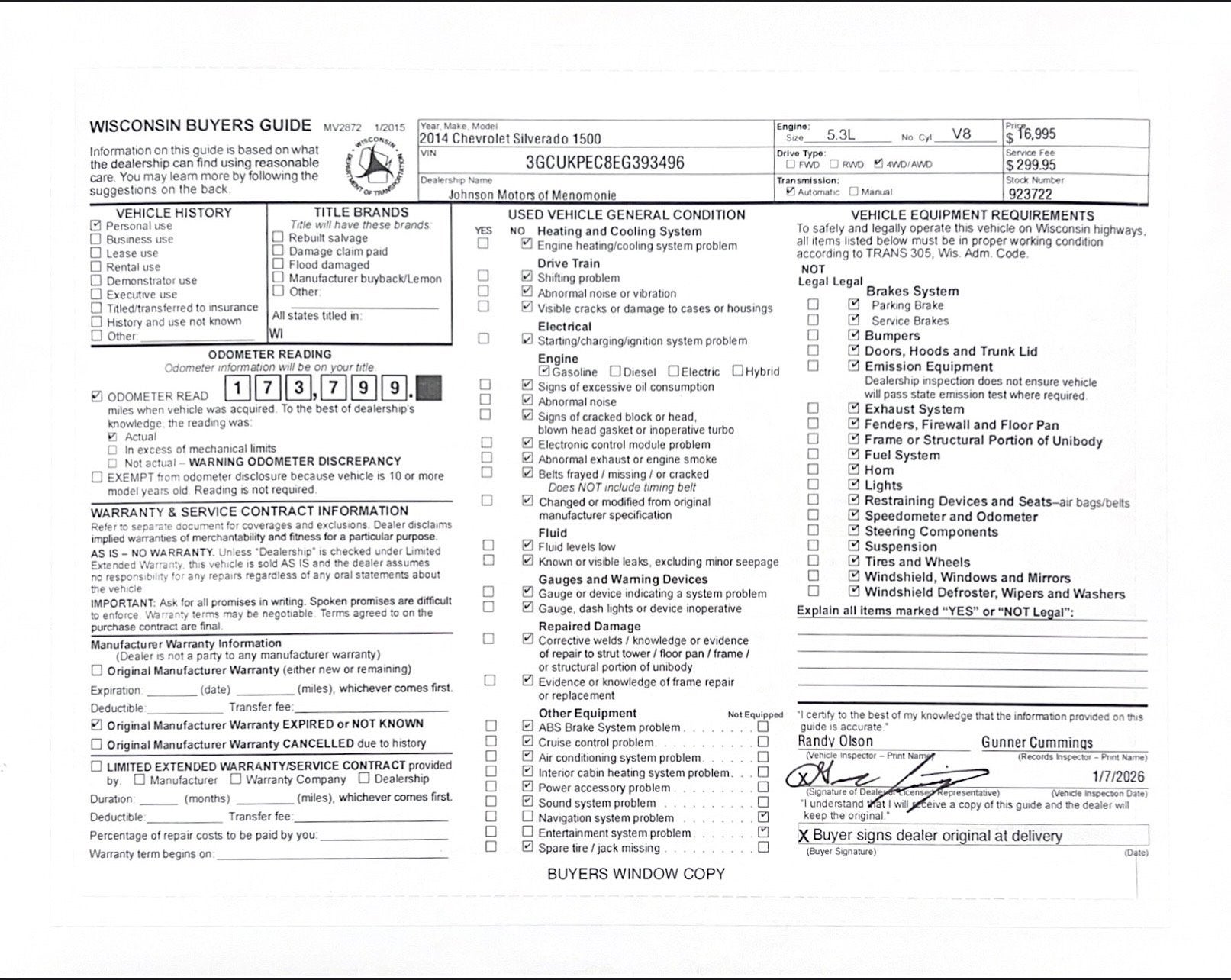 Price does not include sales tax, title, registration, or $299.95 service fee.