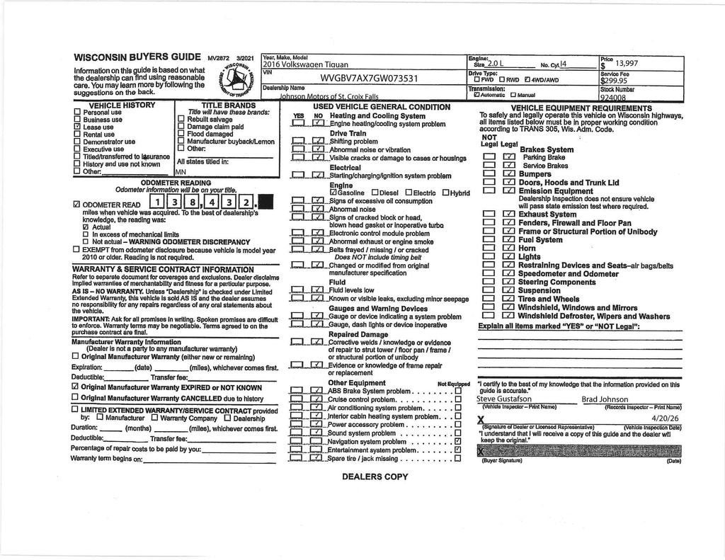 Dealer Comments