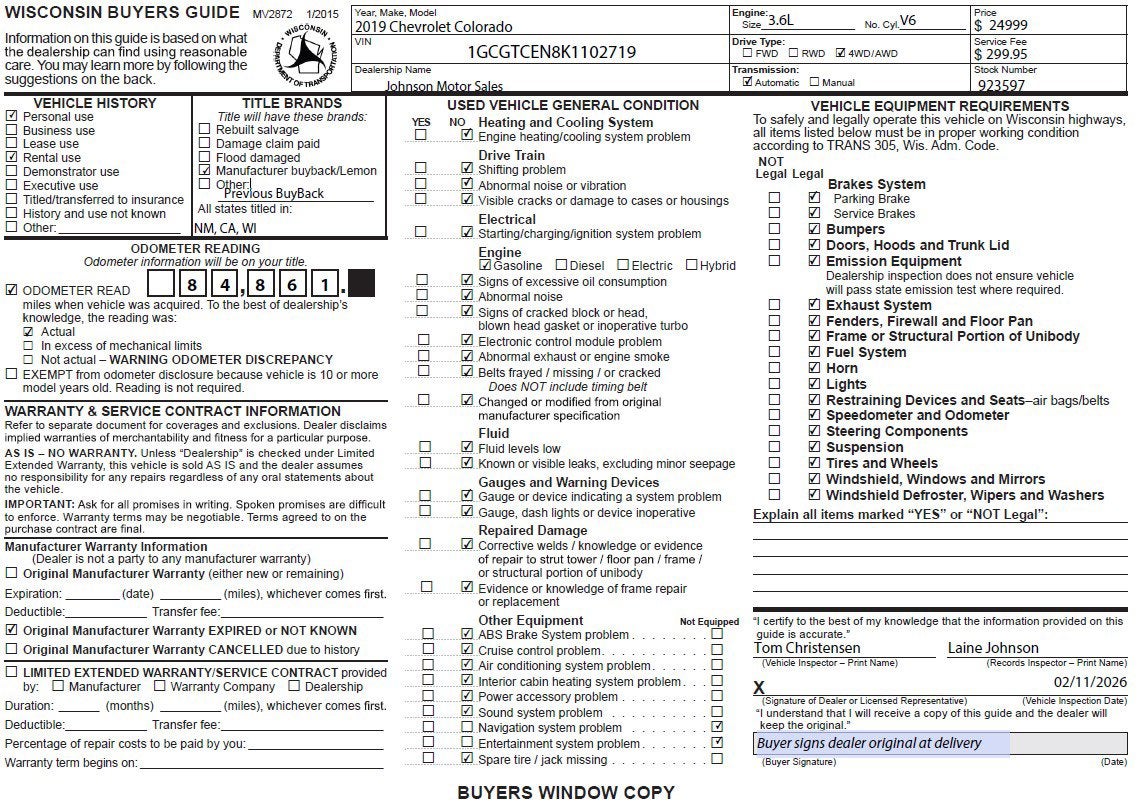 Price does not include sales tax, title, registration, or $299.95 service fee. pbb