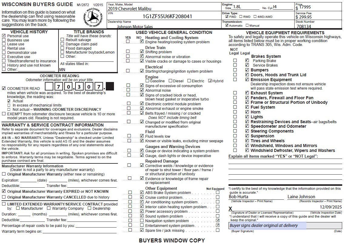 This Chevrolet Malibu Features the Following Options