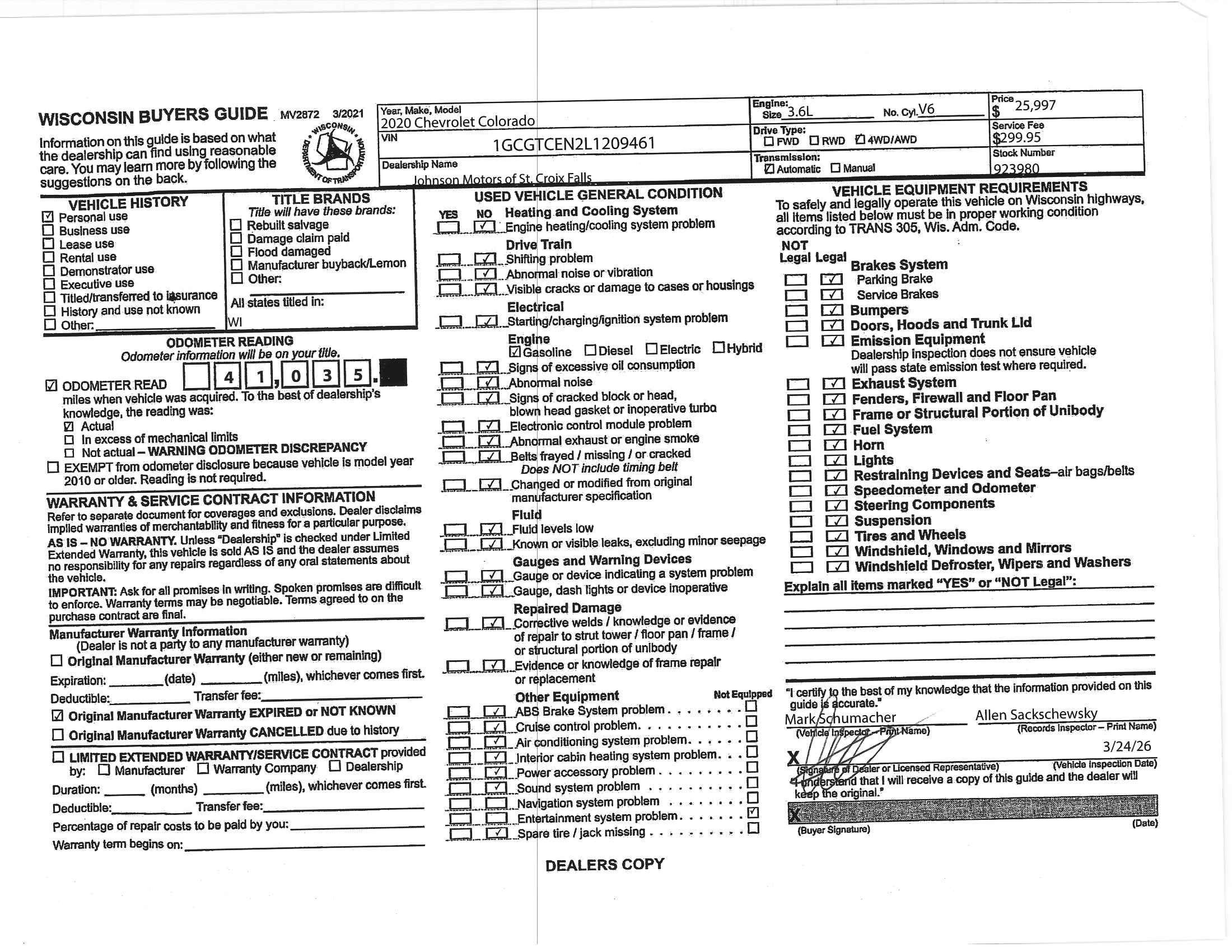 *Silver Ice Metallic 2020 Chevrolet Colorado LT 4WD*Reliable, capable, and ready for anything---this *2020 Chevrolet Colorado LT 4WD* in *Silver Ice Metallic* delivers the perfect balance of power, practicality, and modern features. Equipped with a strong *V6 engine* and *8-speed automatic transmission*, this Colorado provides confident performance whether you're commuting, towing, or exploring off the beaten path.Inside, you'll find a comfortable and functional cabin designed for everyday use, featuring convenient upgrades from the *LT Convenience Package* and thoughtful storage solutions throughout.Technology and convenience highlights include: * *Remote vehicle starter system* * *Manual sliding rear window* * *Heated power-adjustable body-color mirrors* * *Rear window defogger*Built for capability, this Colorado includes the *Heavy-Duty Trailering Package*, making it ready to tow with confidence when the job calls.Safety is enhanced with features such as: * *Forward Collision Alert* * *Lane Departure Warning System* * *Ultrasonic Rear Park Assist* * *Safety Package*Additional highlights include: * *Front fog lamps* * *Preferred Equipment Group 4LT* * Durable, versatile midsize truck capabilityWith its combination of V6 power, advanced safety features, and everyday practicality, this *Colorado LT* is a dependable truck ready for work or play.*Available now at Johnson Motors---proudly serving drivers with over 100 years in business.*