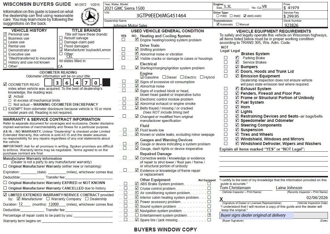A short visit to Johnson Motor Sales located at 620 Deere Dr, New Richmond, WI 54017 can get you a reliable Sierra 1500 today!