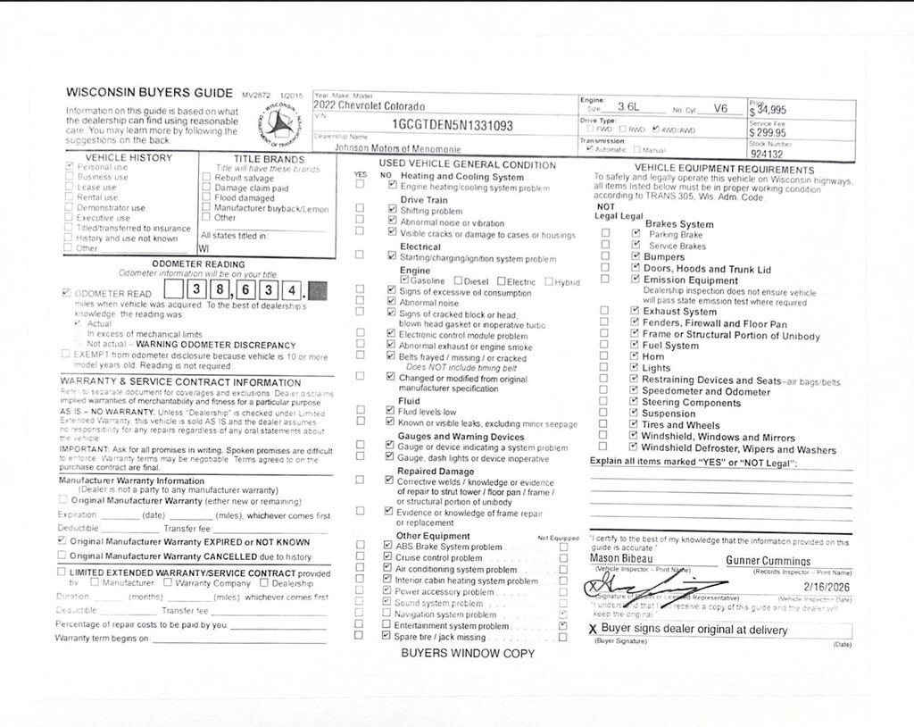 Price does not include sales tax, title, registration, or $299.95 service fee.