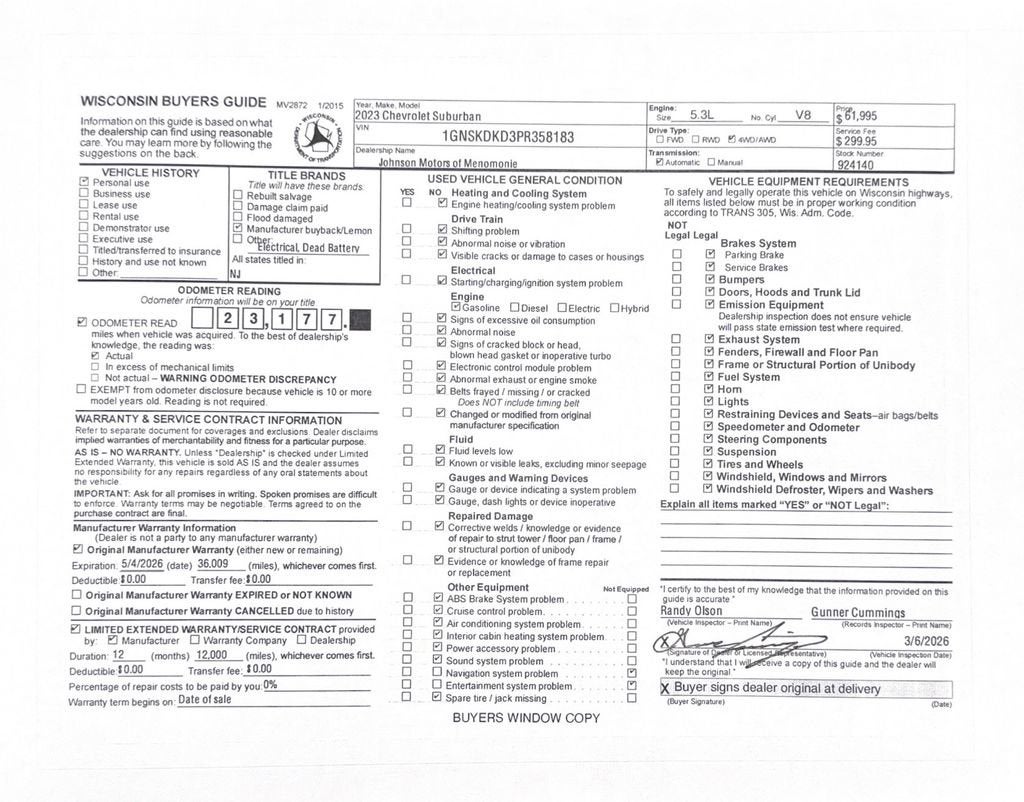 Price does not include sales tax, title, registration, or $299.95 service fee.