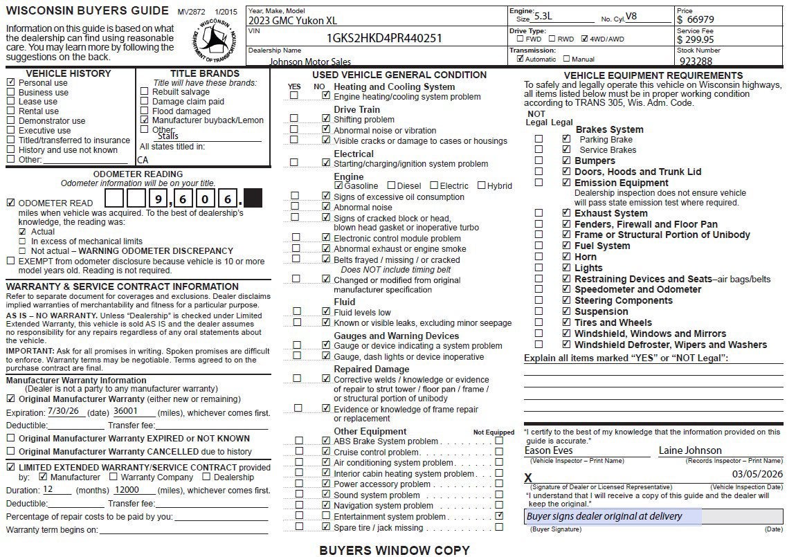 Price does not include sales tax, title, registration, or $299.95 service fee.. bb