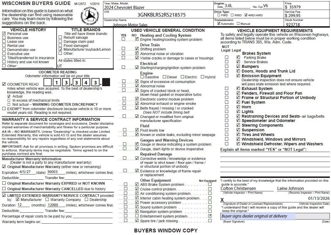 Price does not include sales tax, title, registration, or $299.95 service fee.. bb