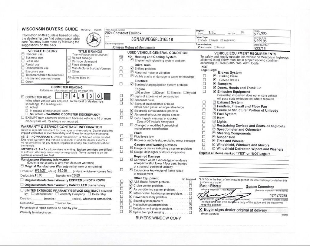 Price does not include sales tax, title, registration, or $299.95 service fee.