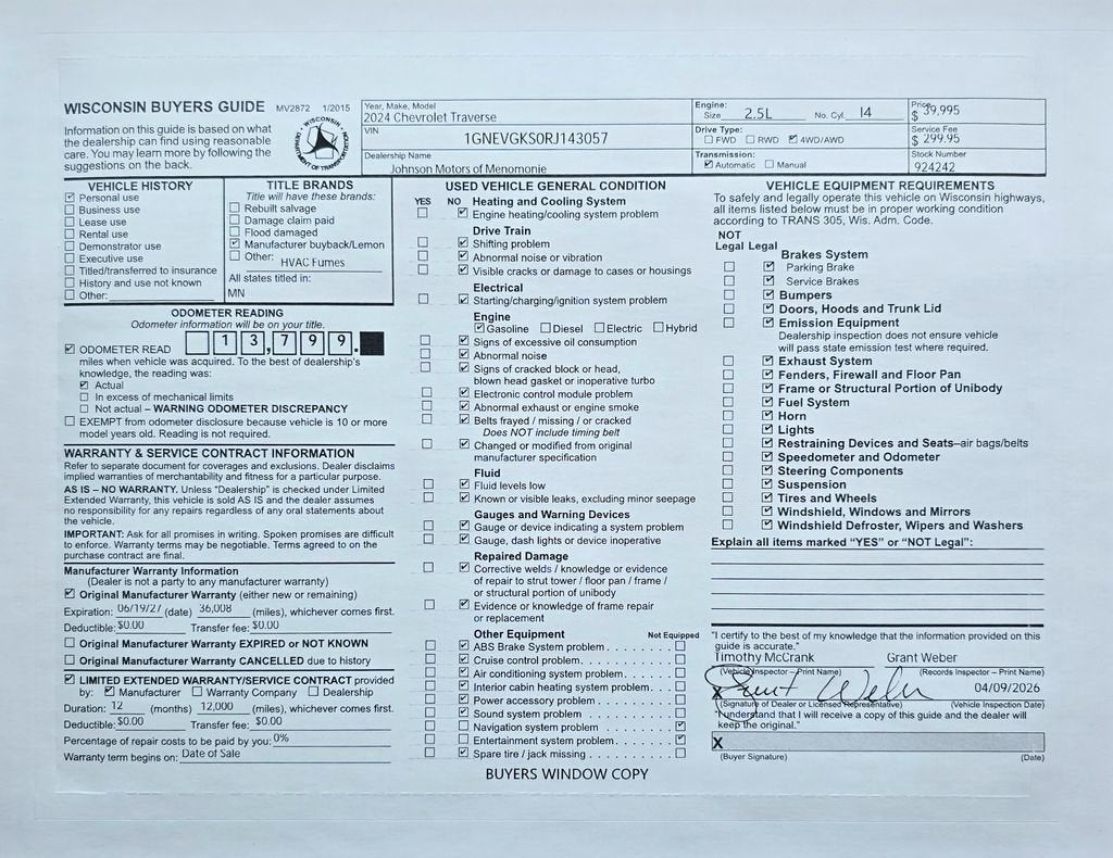 Price does not include sales tax, title, registration, or $299.95 service fee.