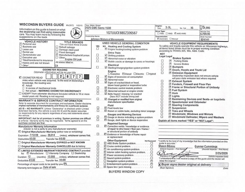 Price does not include sales tax, title, registration, or $299.95 service fee.
